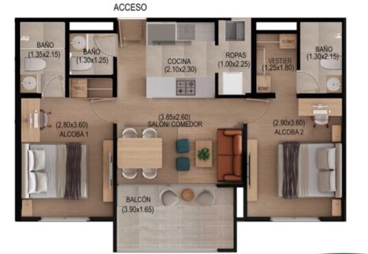 This Apartamento style property is located in is currently Ventas and has been listed on Arrendamientos Dubai. This property is listed at $ 490.000.000. It has room, 3 bathrooms, and is 65.8 m². The property was built in year.