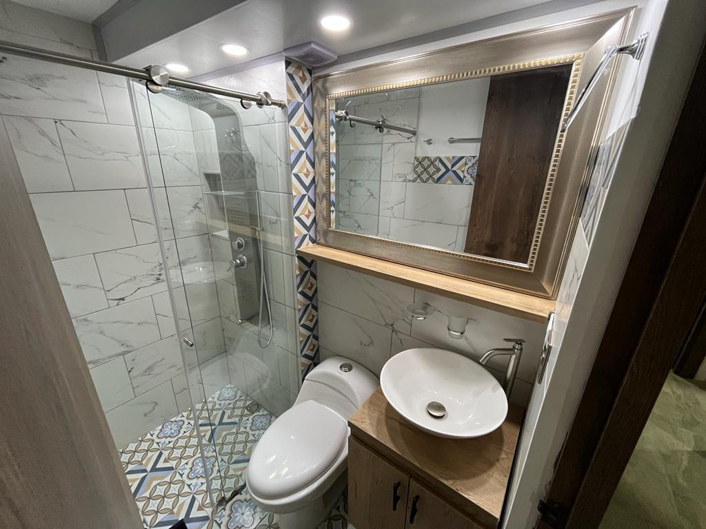 2 baños cada uno con cabina, torre ducha 5 modalidades y extractor de olores