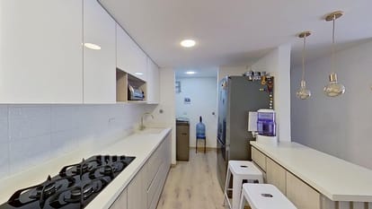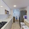 Con acabados que combinan piso laminado en zona social, cocina y habitaciones, y piso cerámico en baños.