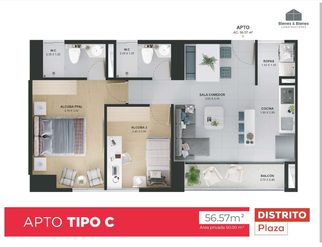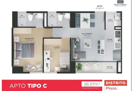 Apto de 56.57 mts